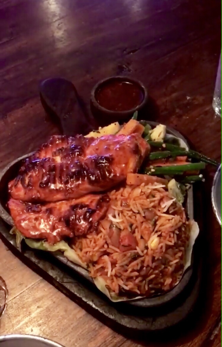 Another dish we ordered was, ‘Nasi Goreng’. This is a sizzler wherein you can opt for rice or noodles. Since we already chose noodles, this time we opted for rice and combined it with prawns. This sizzler was presented in a fancy style. They placed two sticks of prawns above the rice with an egg omelette served in the sizzling dish. This dish too was sufficient for two. The taste wasn’t that great yet edible. We were actually quite full by then. The DJ played some good old classic hits which made us groove to the music! We had an amazing time!
